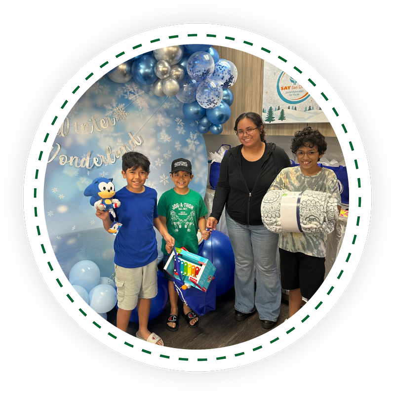 In the words of one parent: "I recently got a 60-day notice to move because my landlord sold the property, and SAY San Diego provided me with assistance with my deposit to move into a new place, and on Christmas with gift cards for presents for the kids. Now that's awesome! I appreciate all the help, and I'm so very grateful to have this opportunity."